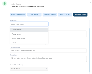 We’ve introduced a new Root Cause feature within the Case Management timeline, which allows teams to record the underlying cause of Damp & Mould as investigations progress. Root causes can be categorised as penetrating damp, rising damp, condensation or other. Capturing this information helps landlords and housing teams more clearly evidence their investigations, supports consistent decision-making, and significantly improves the overall quality of Damp & Mould case data.