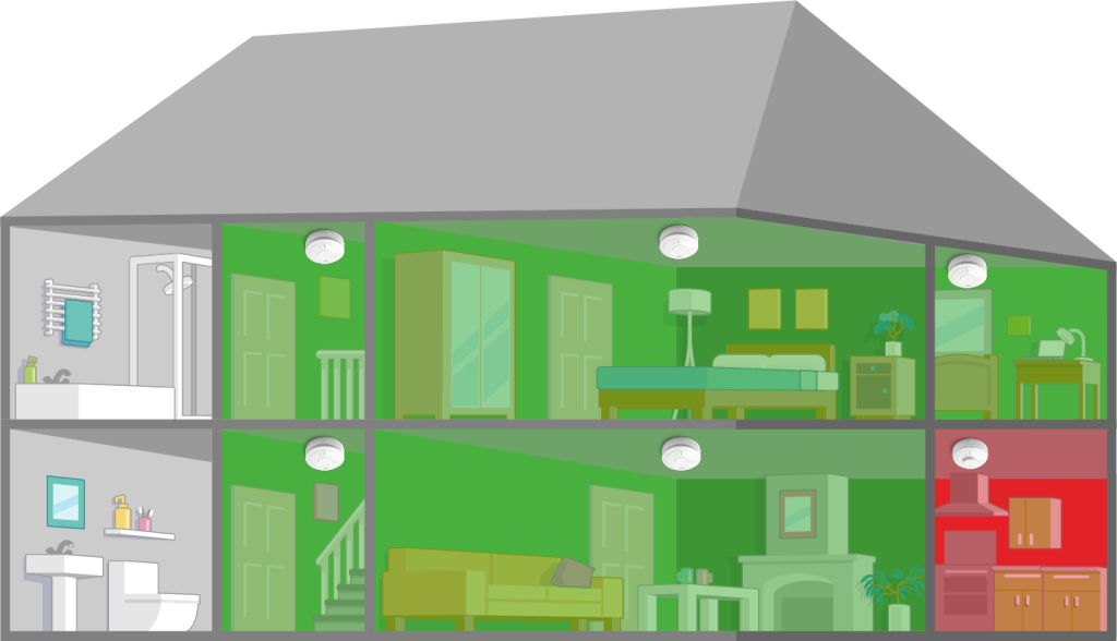 At the upper end of domestic fire detection provision sits LD1. This category provides coverage in almost all rooms, excluding only very low-risk areas such as bathrooms and small cupboards.