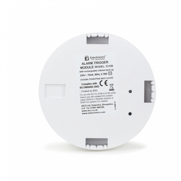 The Ei129 is designed to be either remotely sited or can be fitted under a Smoke/Heat Alarm by removing the cover plate and mounting the alarm base plate onto the unit.